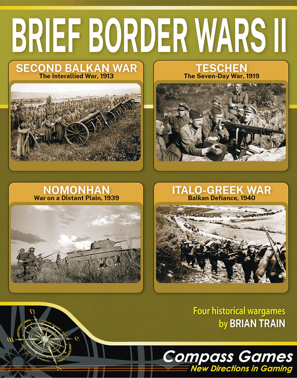 Brief Border Wars 2 is the second set of four small operational level games on short border conflicts from Compass Games. The game system uses a card-driven system first introduced in Brief Border Wars that models the chaotic, stop-and-start nature of these impromptu wars. Four sets of exclusive rules reflect the peculiar nature of each conflict. Your sense of improvisation will be challenged as you explore four of the more interesting small wars fought in the early 20th century.