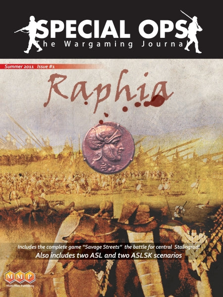 The premier issue of Special Ops is jam-packed with strategy and analysis articles for many of MMP's fine games, including: Shifting Sands, ASL, ASL Starter Kit, SCS Gazala, and Baltic Gap. You'll also find an Origins 2009 report, as well as an article about the use of wargames--Fire In The Sky specifically--in the classroom.