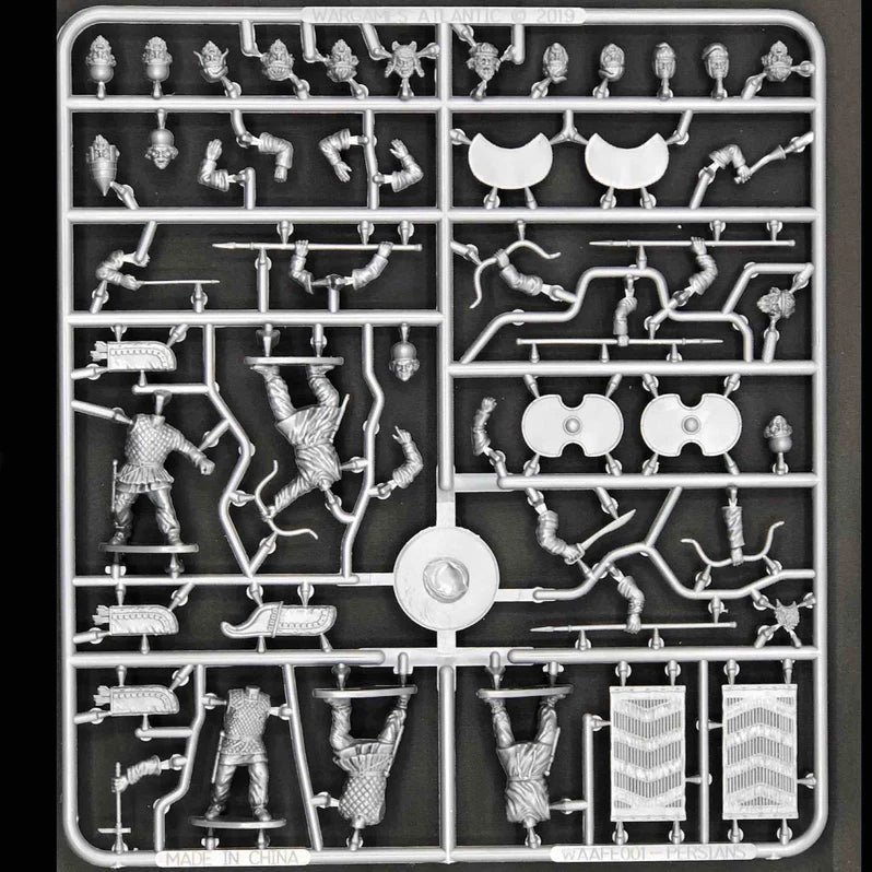 The mighty armies forged by Cyrus the Great, Darius, and Xerxes dominated the Eastern Mediterranean for centuries until finally falling to Alexander. Led by the elite Immortals, Persian armies were built from the many kingdoms and tribes conquered first by the Achaemenids including the Median, Lydian, and the Babylonian empires. This box set can be used to create the infantry of Persia. They are in Median dress with heads suitable for several satrapies and allied tribes.