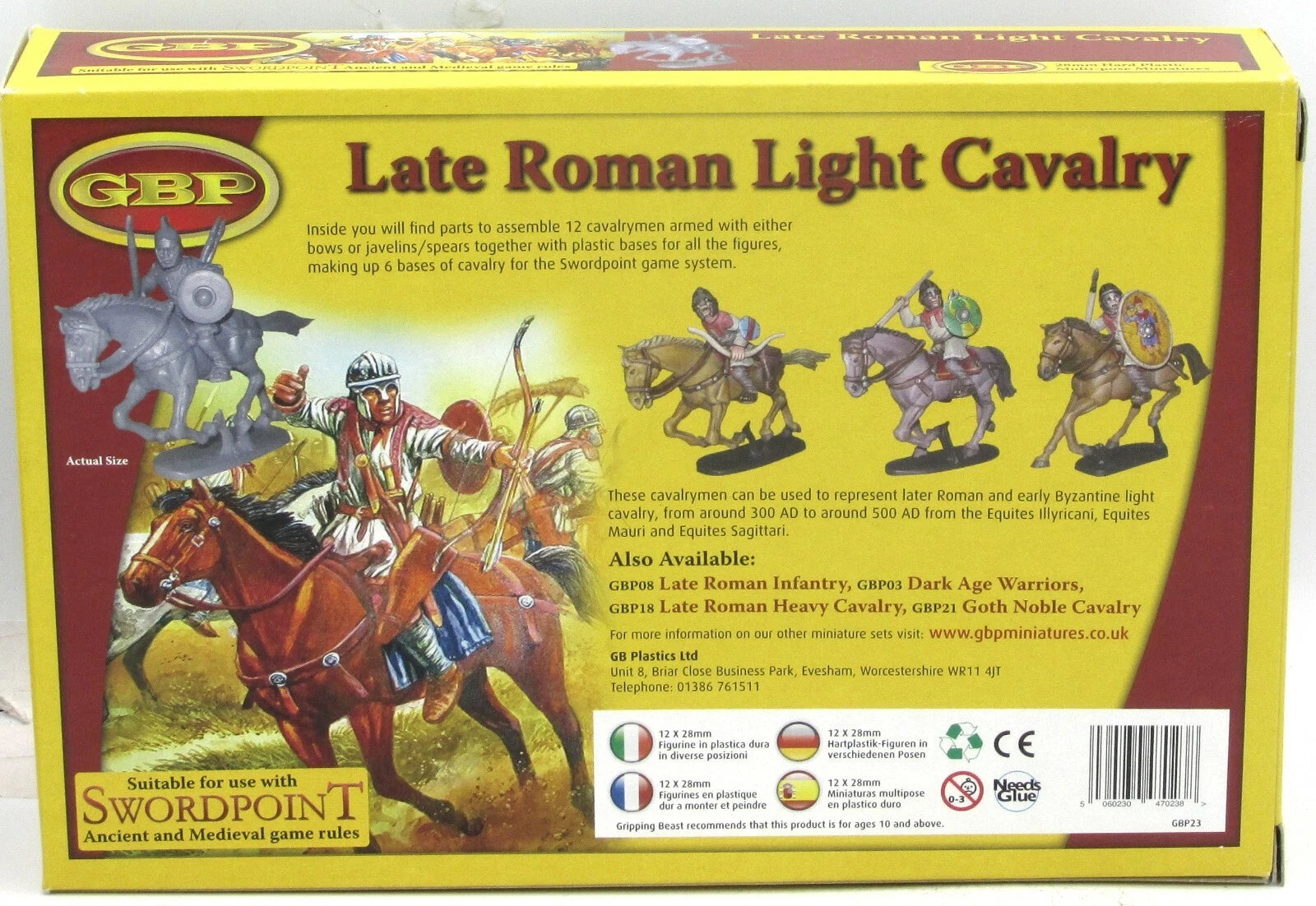 This product contains twelve GBP23 Late Roman Light Cavalry miniatures.